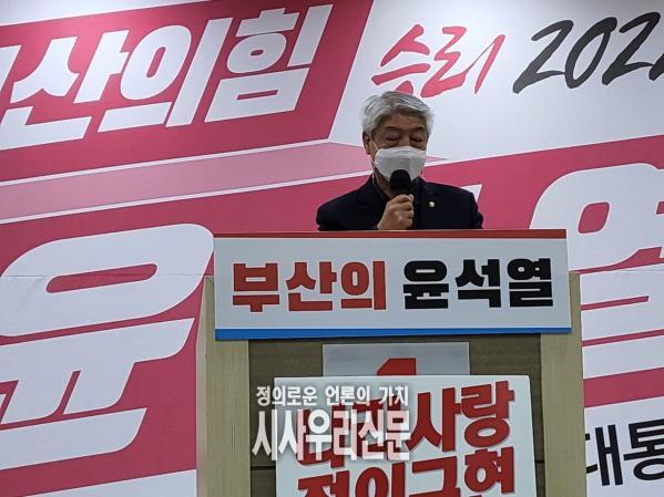 윤사모 부산시 협의회 박수용 회장은 이날 대회사에서 "우리가 여기에 왜 모였냐? 우리나라는 지금 국민이 정권을 걱정하고 정치를 걱정하는 비정상적의 나라이다"라며 이같이 밝혔다.