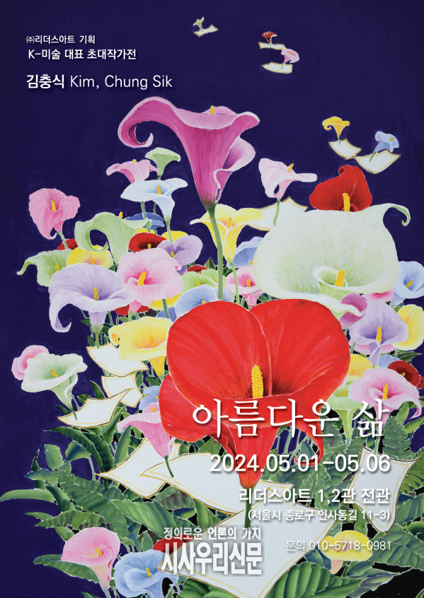 [月刊시사우리]㈜리더스아트(대표 배진한)이 기획한 K-미술 대표 작가 한국화 김충식 화백의 초대개인전 ‘아름다운 삶’이 5월 1일부터 5월 6일까지 서울시 종로구 인사동 소재 ㈜리더스아트 리아갤러리에서 개최되었다.