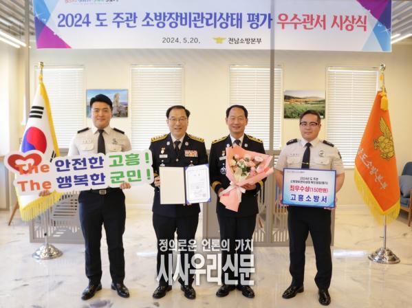 [月刊시사우리]고흥소방서가 전라남도소방본부 주관 ‘2024년 소방장비 검열평가’에서 각 점검분야별 높은 성적으로 최우수상을 수상했다고 20일 밝혔다.