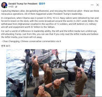 [月刊시사우리]美 도널드트럼프대통령은 7일 자신의 페이스북을 통해 "좌파와 좌파 언론은 눈을 감고 여전히 트럼프를 공격하고 있다"며"이것만 봐도 좌파 언론의 글만 읽고 좌파 언론을 믿는다면 뇌가 썩어들어갈 것이라는 것을 알 수 있다"고 경고했다. ▲트럼프 대통령 페이스북 캡쳐     ©月刊시사우리 편집국 트럼프 대통령은 "마두로 생포, 하메네이 참수,...